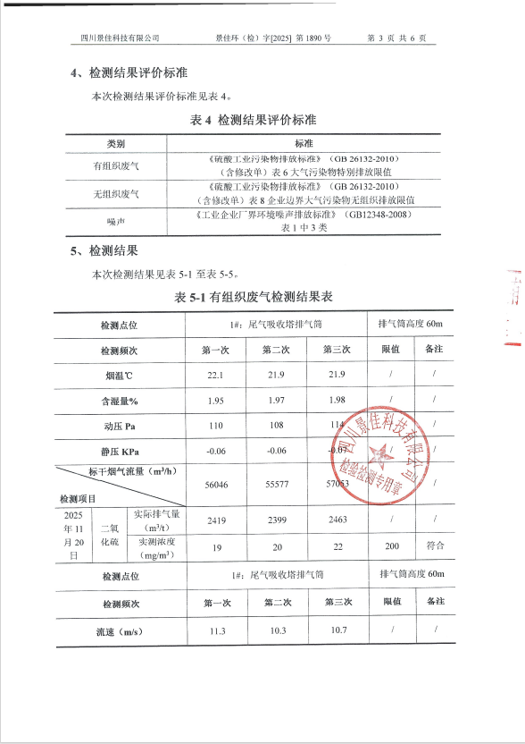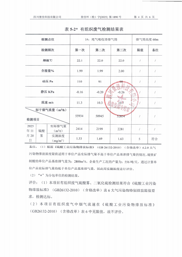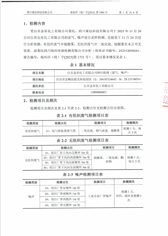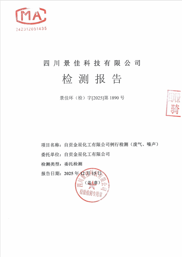自貢金星化工有限公司自行監(jiān)測2025年報告